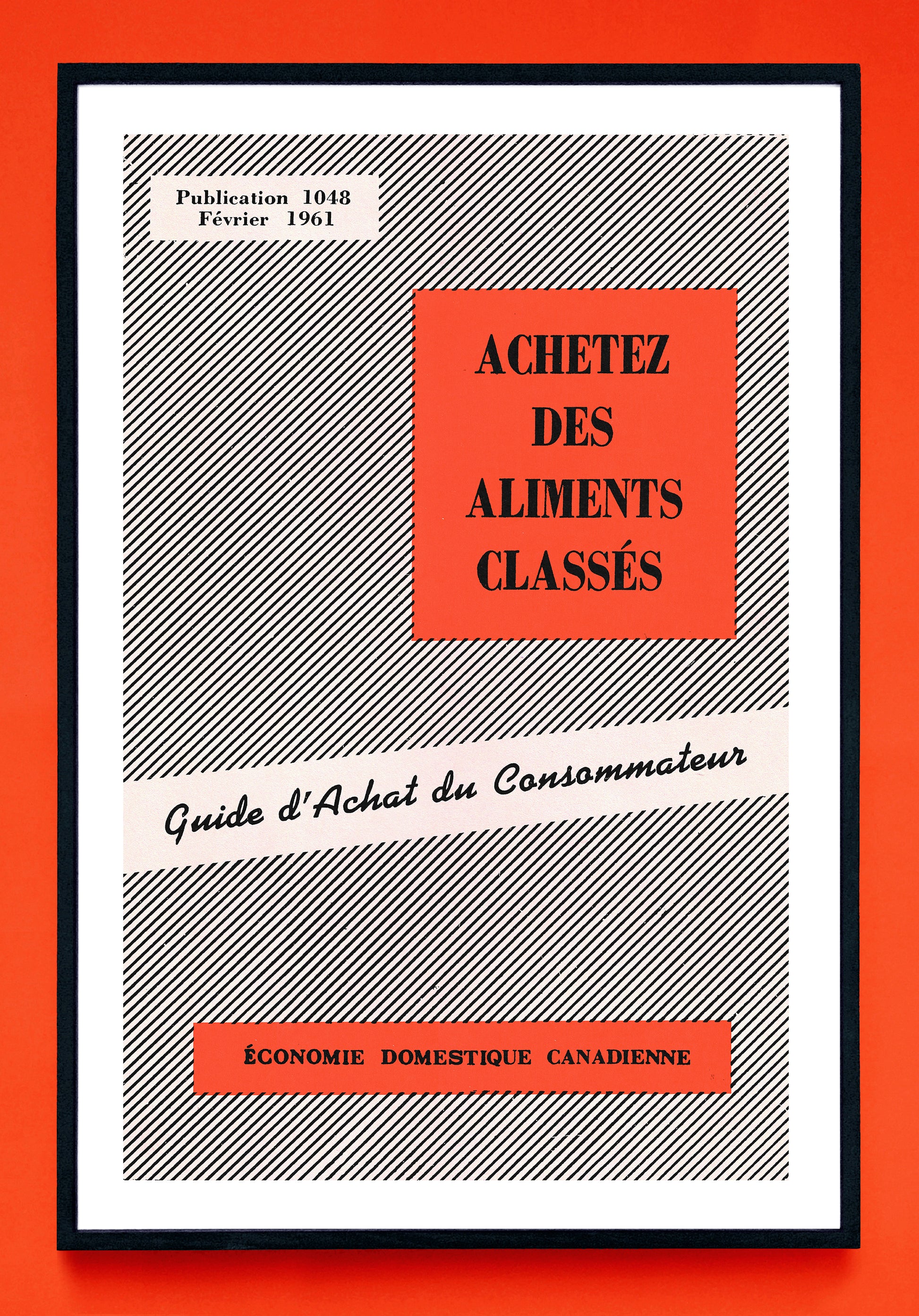 A booklet cover reproduction available at 12x18" or 24x36" on Epson Enhanced Matte 192 gsm paper printed with Epson UltraChrome XD2 archival ink. Sold in an open edition, unframed. The Canada Department of Agriculture wordmark on these covers have been replaced with the words ”Canadian Home Economics” and "Économie Domestique Canadienne" due to Section 9 of the Canadian Trademarks Act.