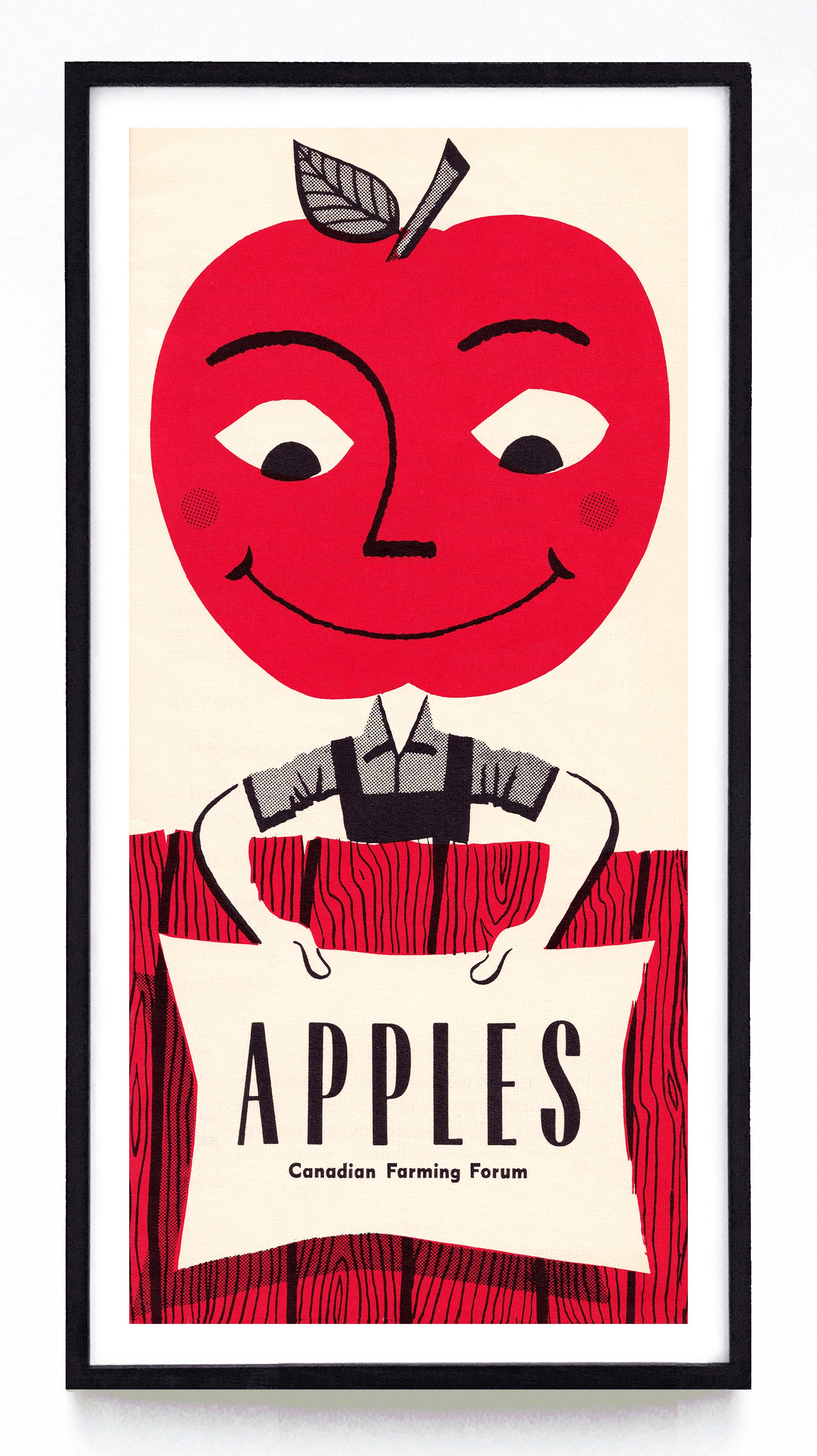 While this charming apple guy has stared at me from a shelf for almost a decade, he only recently encouraged me to give him a spot in the Agricultural Arts collection. Why have I waited so long? He was in a more vertical format than Canada's Department of Agriculture usually published in, so I had to figure out some new print sizes to make it work. So, after a scan on my brand new scanner and an extensive clean-up, he's finally in his rightful place.