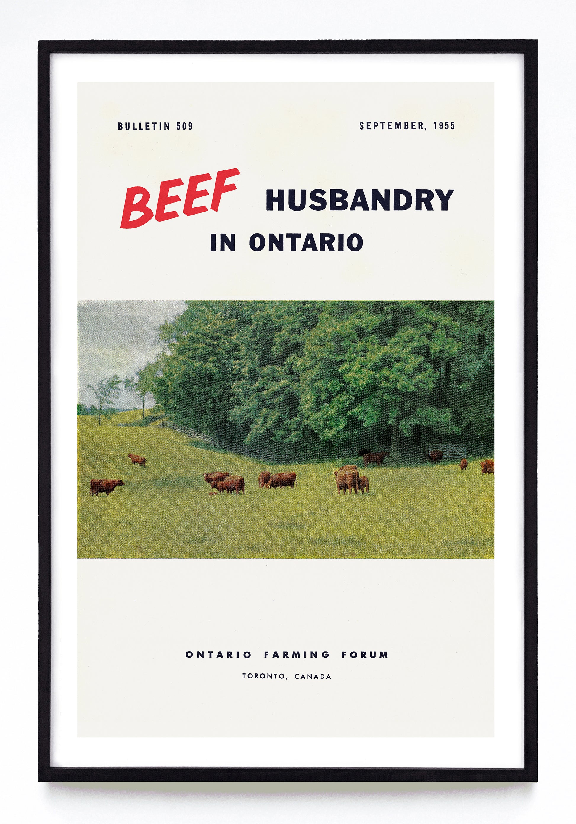 A booklet cover reproduction available at 12x18" or 24x36" on Epson Enhanced Matte 192 gsm paper printed with Epson UltraChrome XD2 archival ink. Sold in an open edition, unframed. The Ontario Department of Agriculture wordmark on this cover has been replaced with the words ”Ontario Farming Forum” due to Section 9 of the Canadian Trademarks Act.