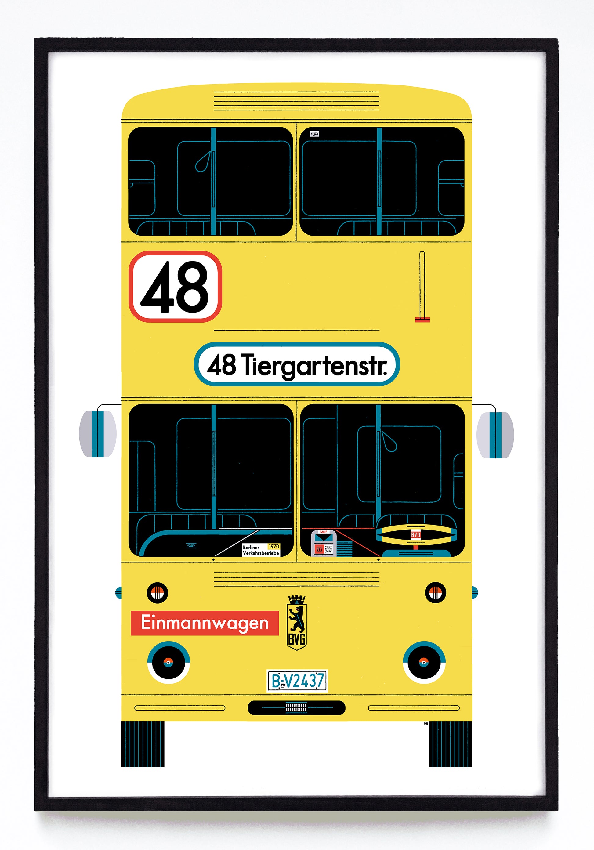 "Edmonton Transit System No. 478" - This is a General Motors "New Look" (aka "Fishbowl") bus built in 1965 as it would've looked in 1977, and it's the kind of bus I would've spent riding to bingo in Beverly with my Grandma in. The ETS logo seen on the fare box is my second favourite. Of note: this is the bus that started this print series.