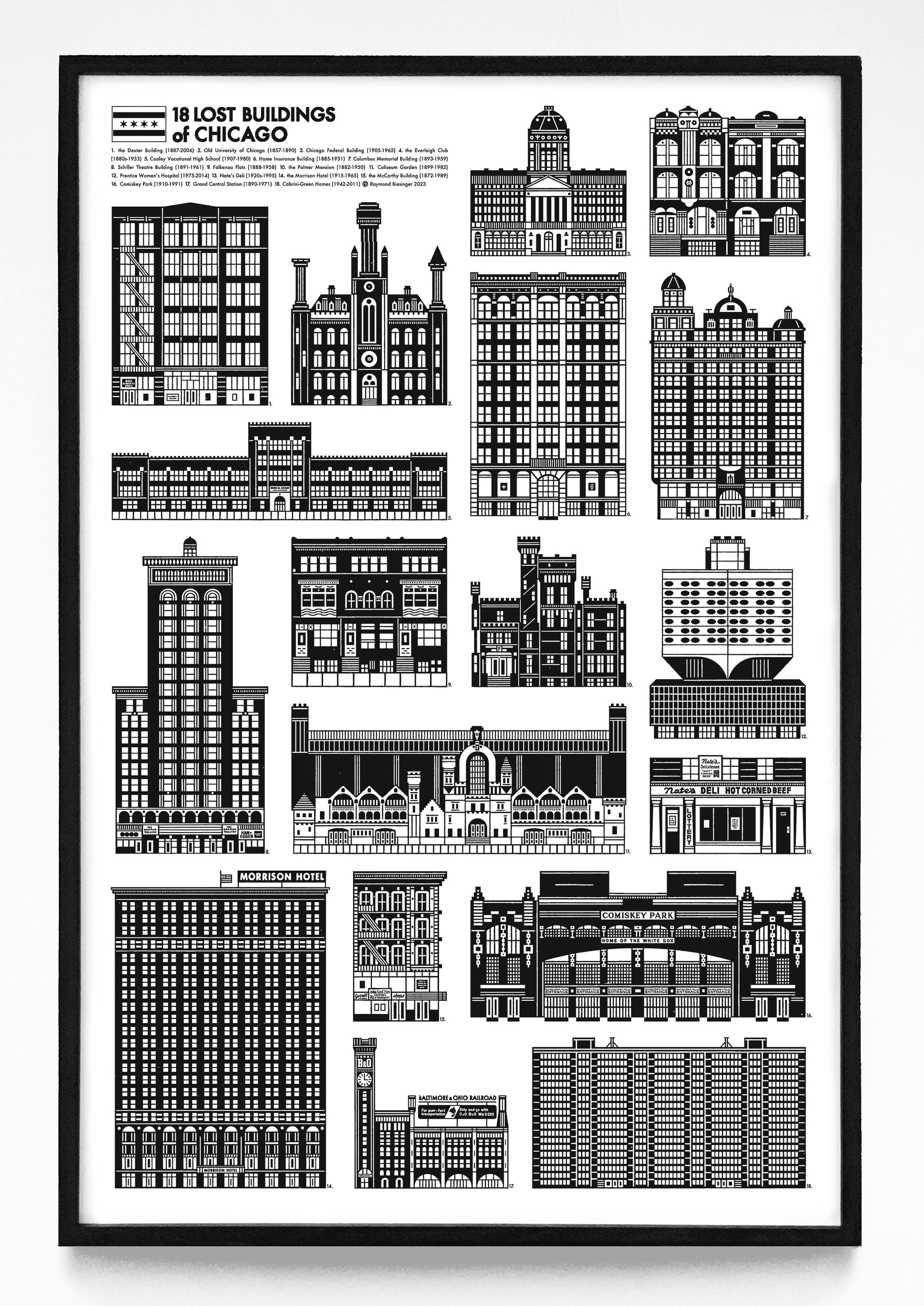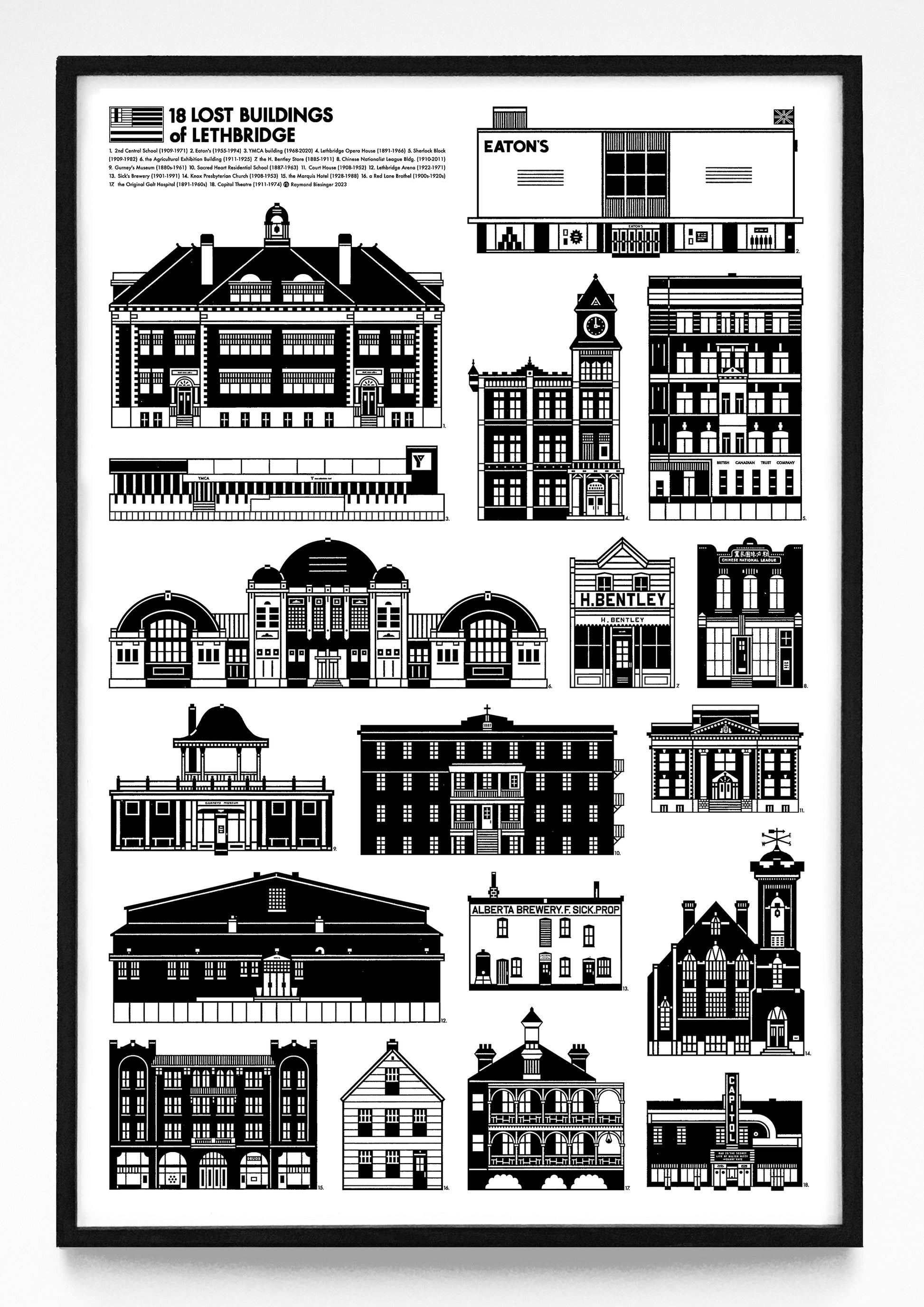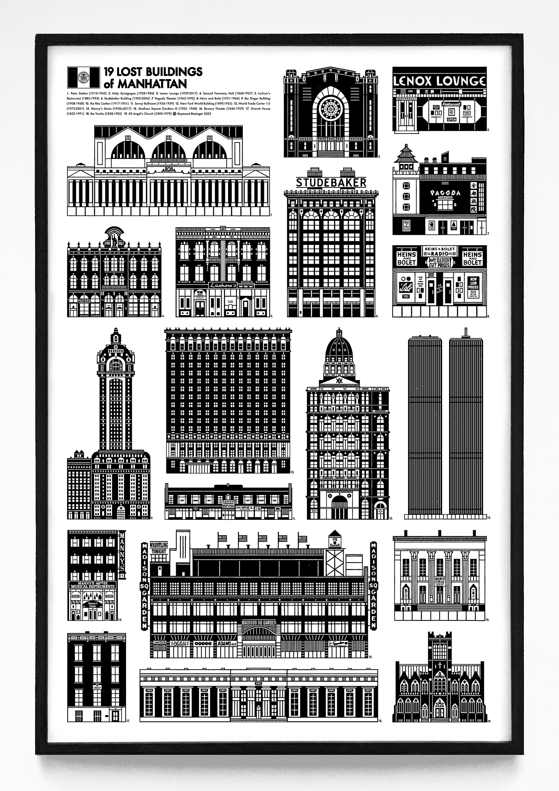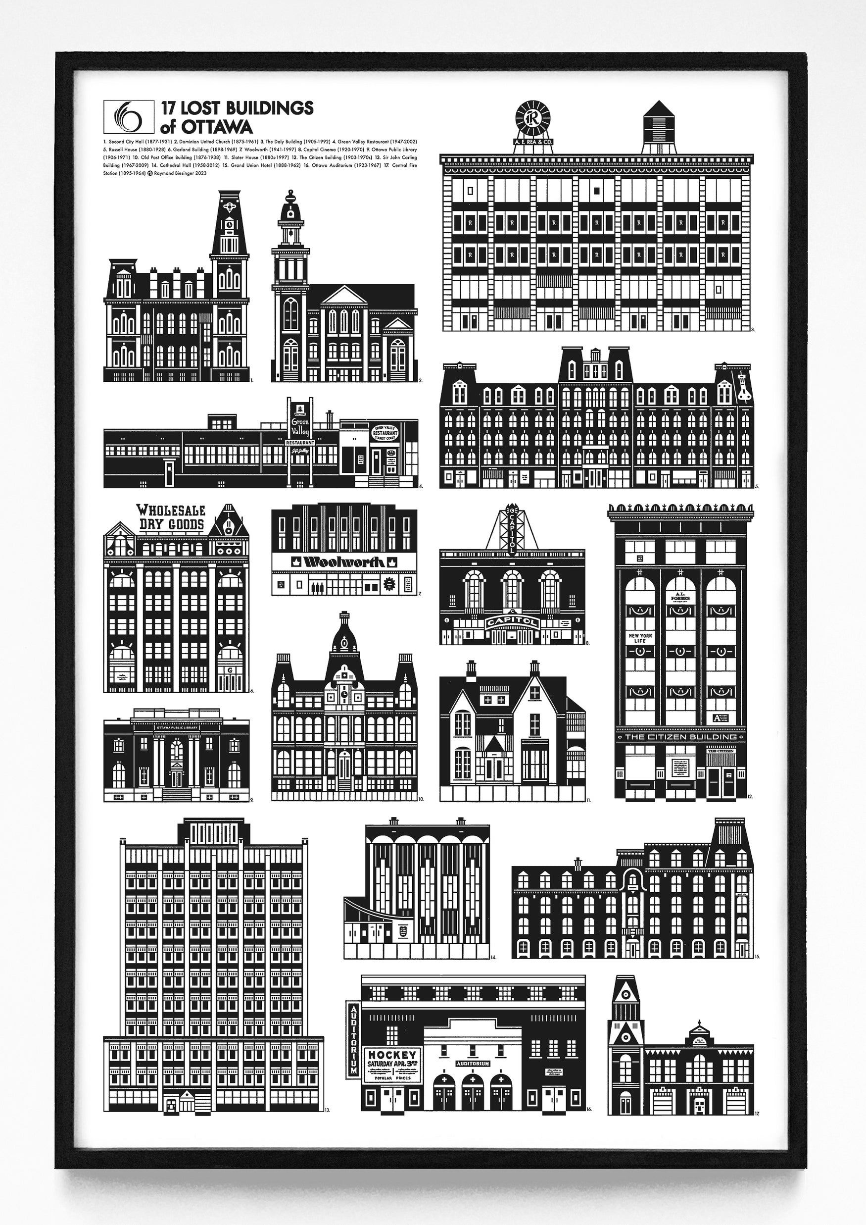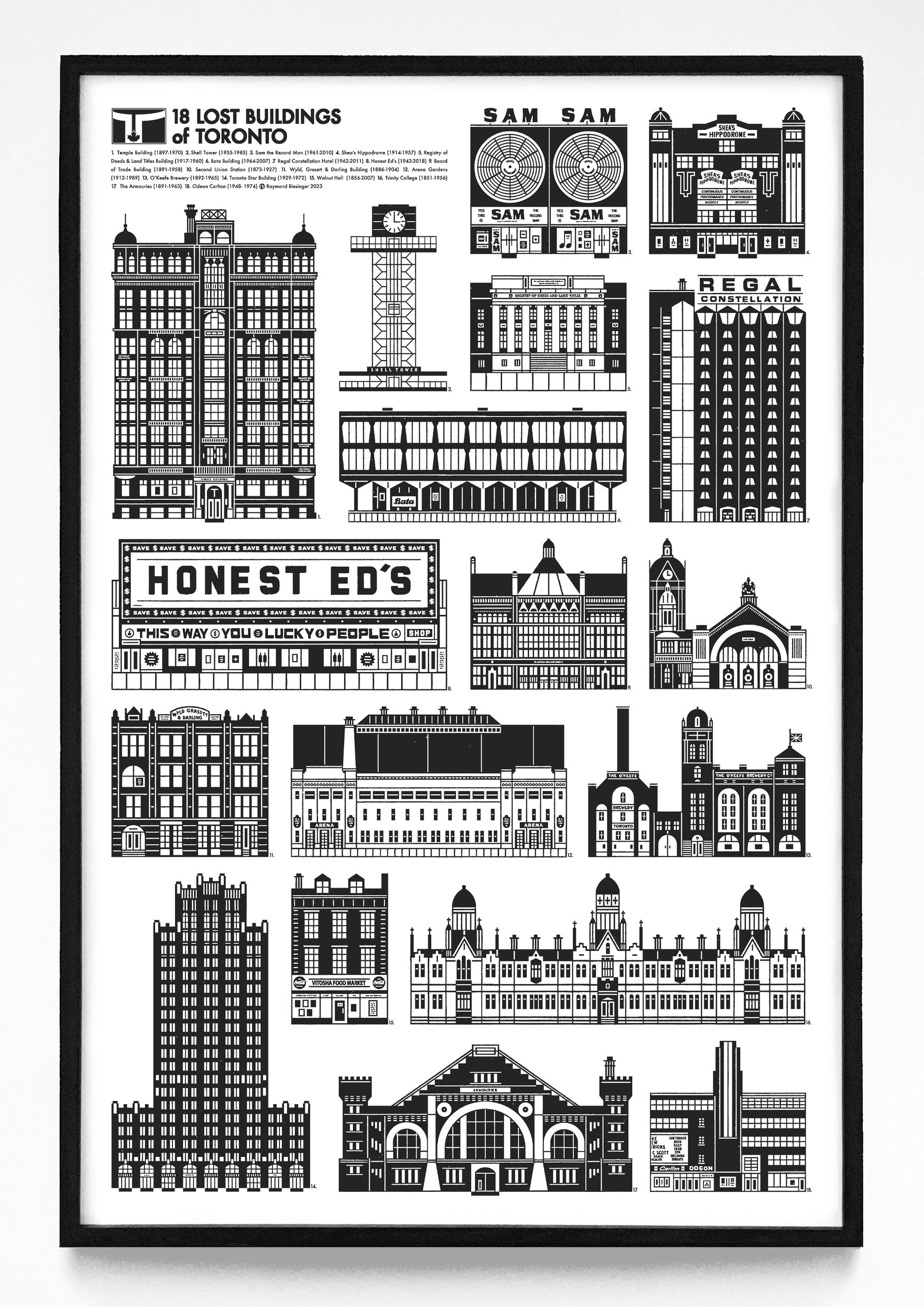 Since 2016 I've been immersed in the research and illustration of vanished Canadian and American architecture, and besides the bestselling book on the Canadian contingent of drawings, I’ve also made thirty-three prints capturing the two nations' prematurely bulldozed, burned down, or otherwise disappeared structures of note.