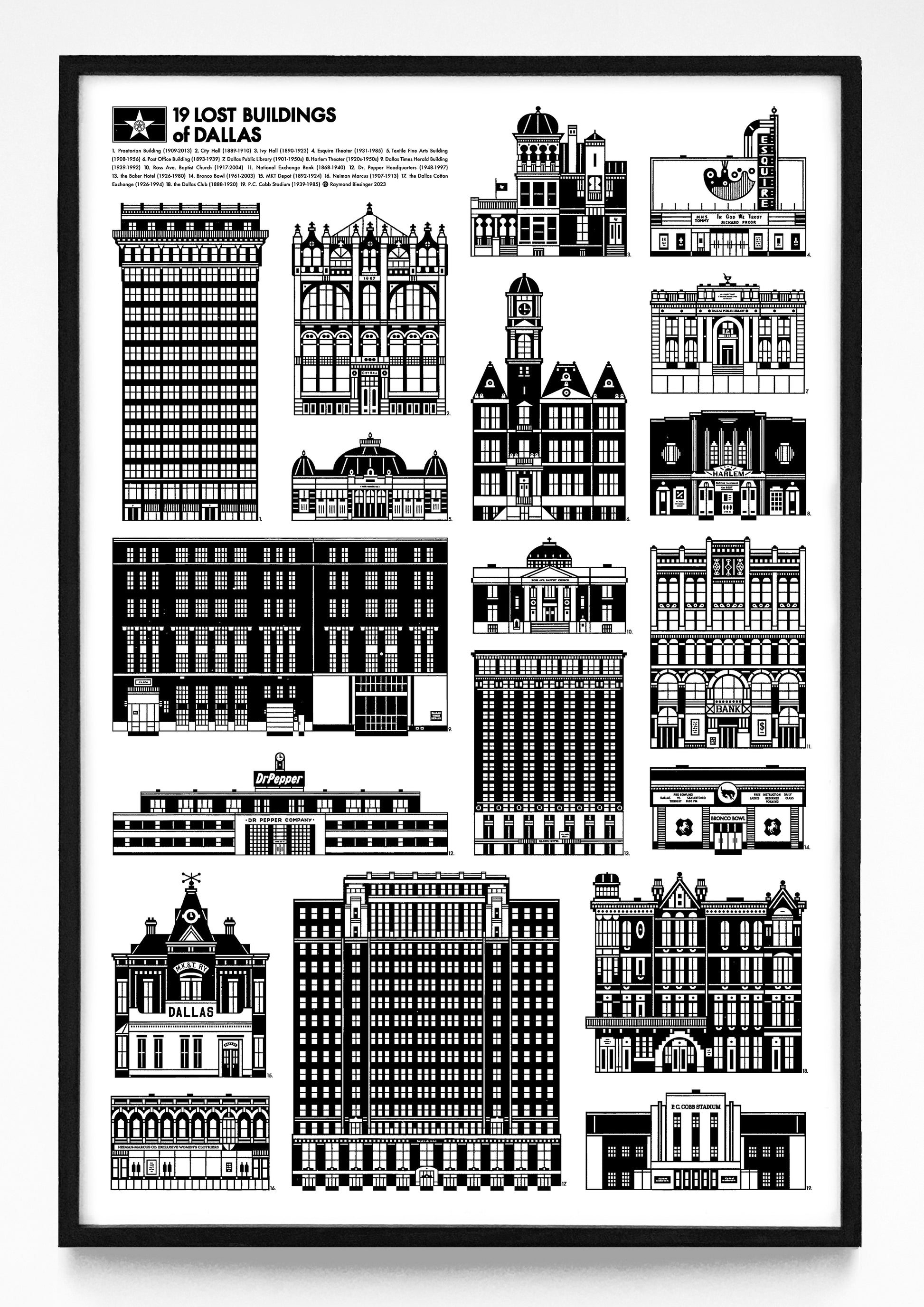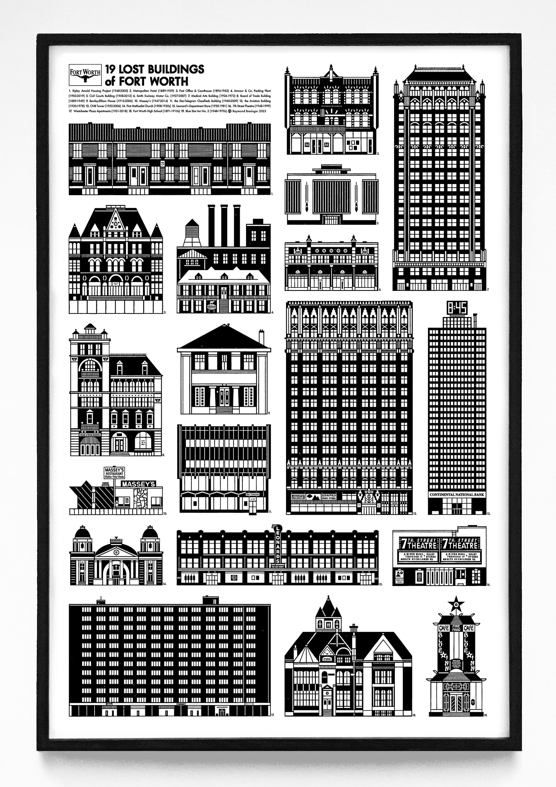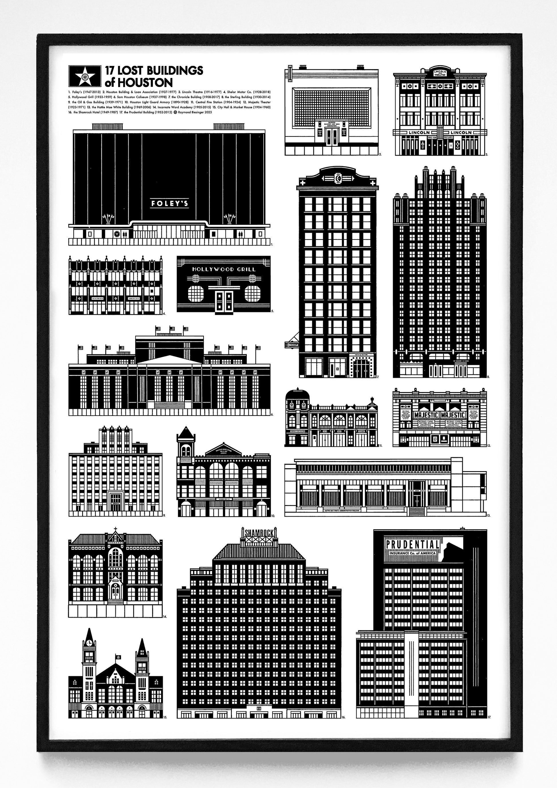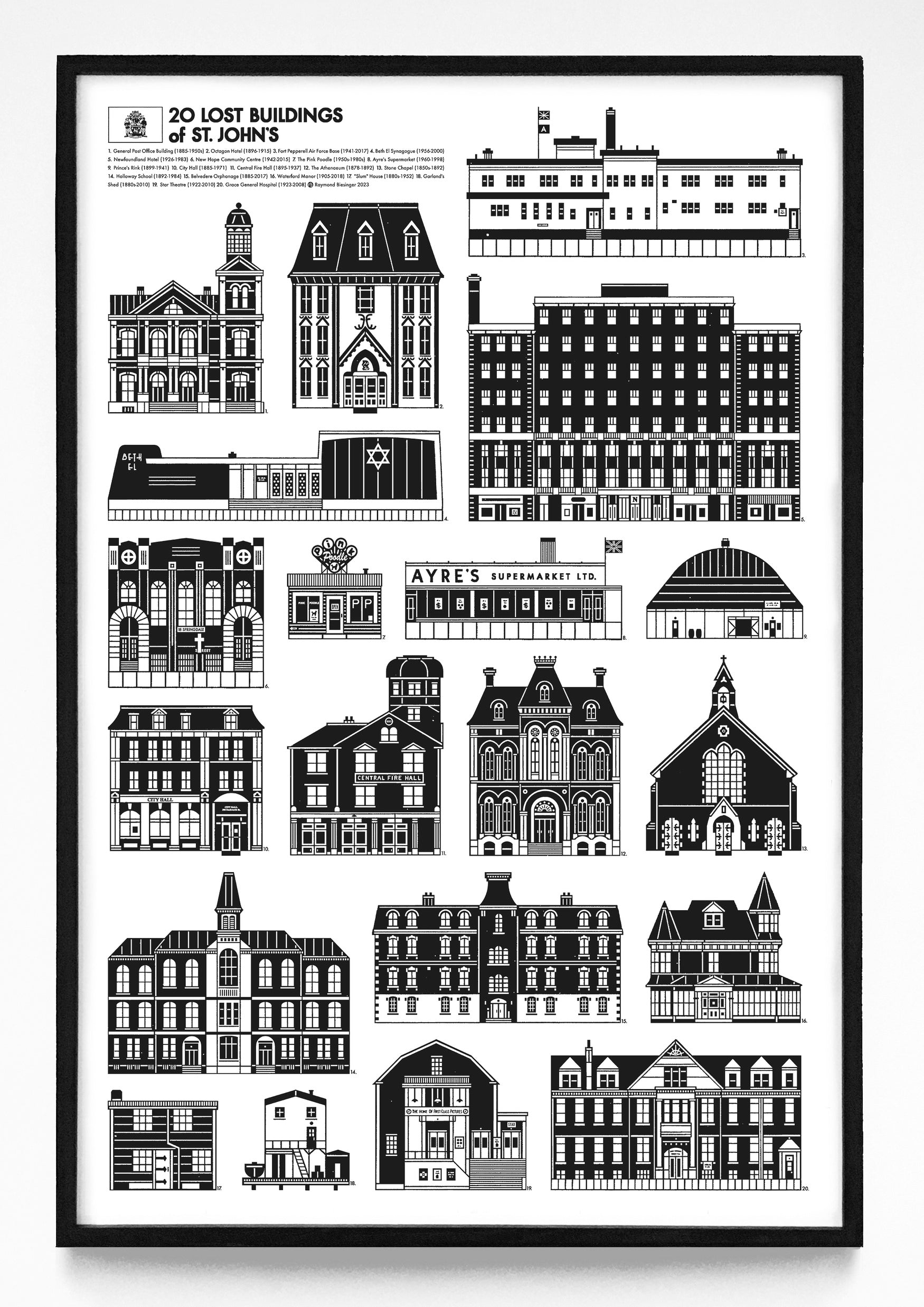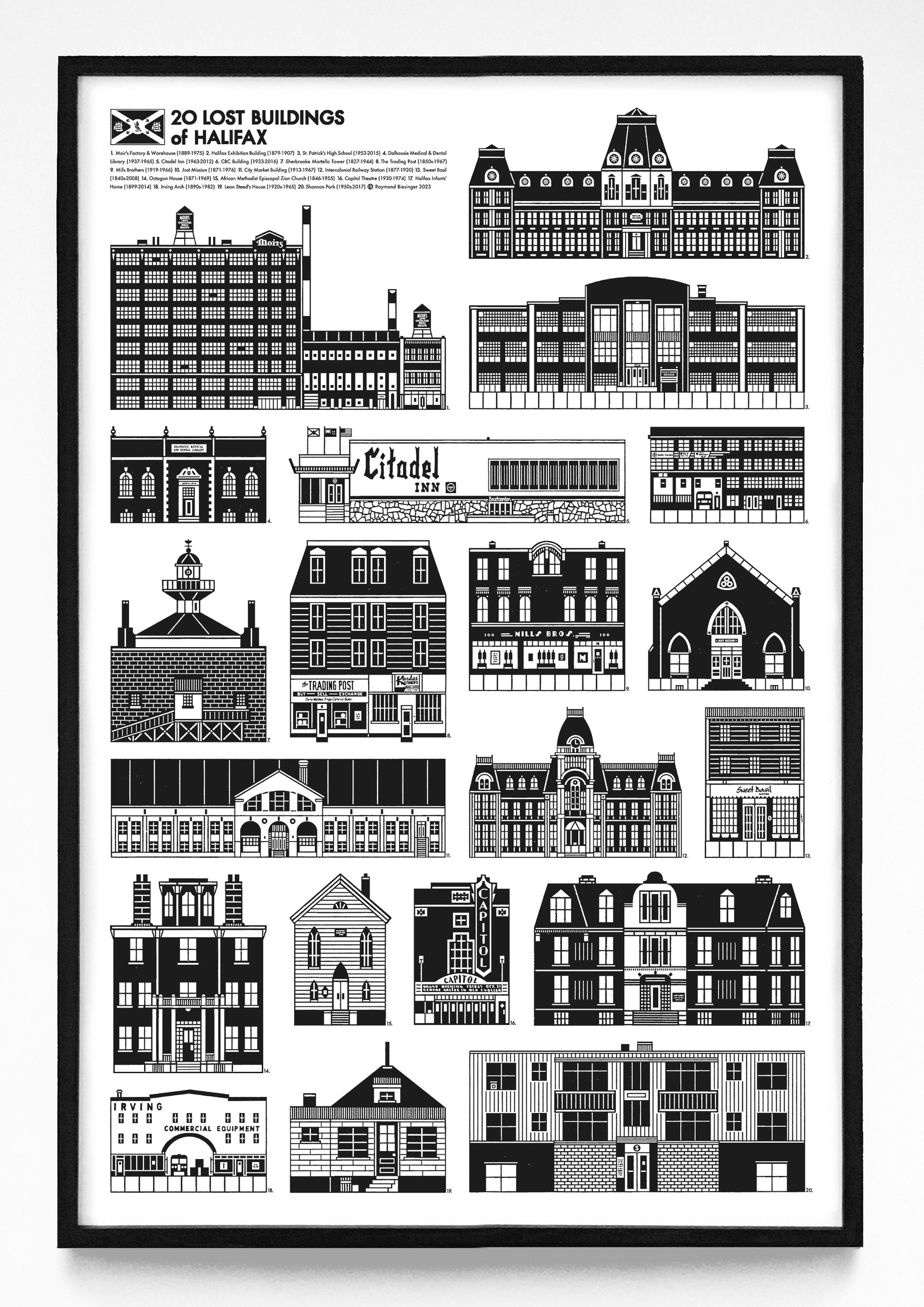 Currently available in the print series: Austin, Calgary, Chicago, Dallas, Edmonton, Fort Worth, Halifax, Hamilton, Houston, Jacksonville, Lethbridge, LA, Montreal, Nashville, four NYC boroughs, Ottawa, Philadelphia, Phoenix, my neighbourhood of Pointe-Saint-Charles, Ville de Quebec, St. John's, San Antonio, San Diego, San Francisco, San Jose, Saskatoon, Toronto, Vancouver, Victoria, and Winnipeg. Oh, and all together the print series shows 623 lost buildings, in case you're counting.