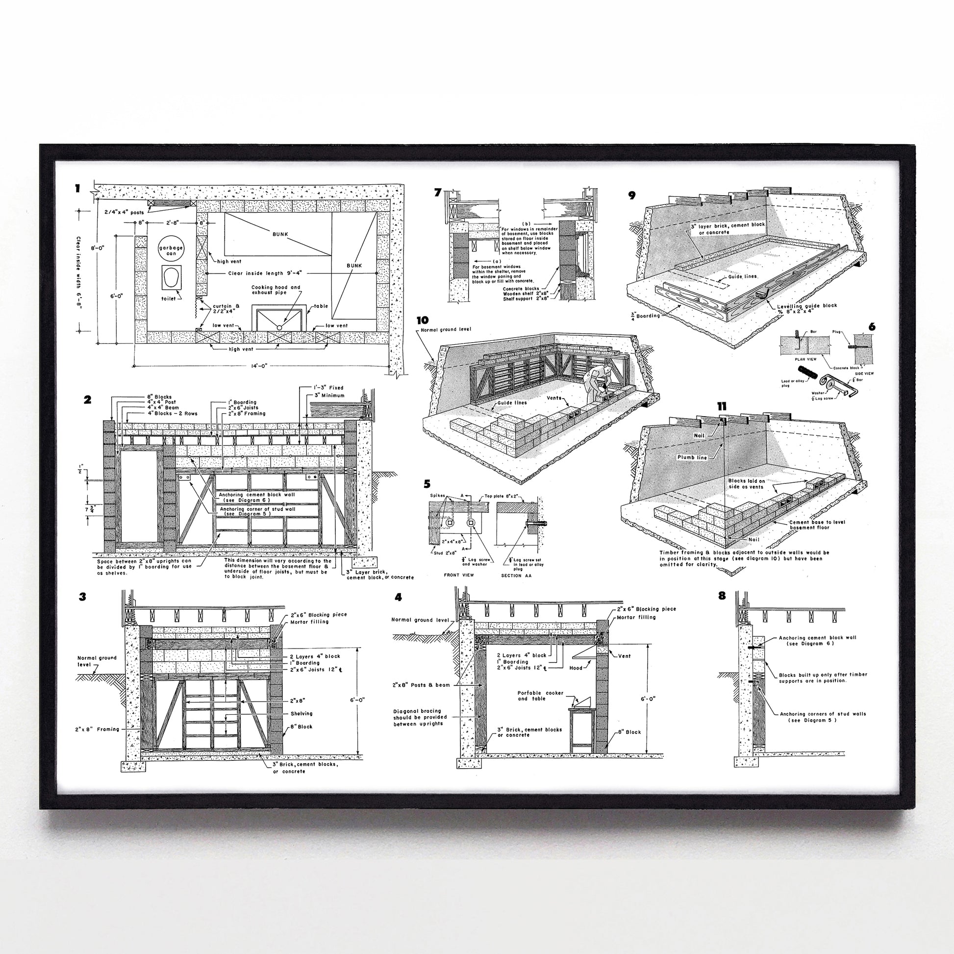 "Enclosed (Basement Fallout Shelter) Wall Chart" print (1960)